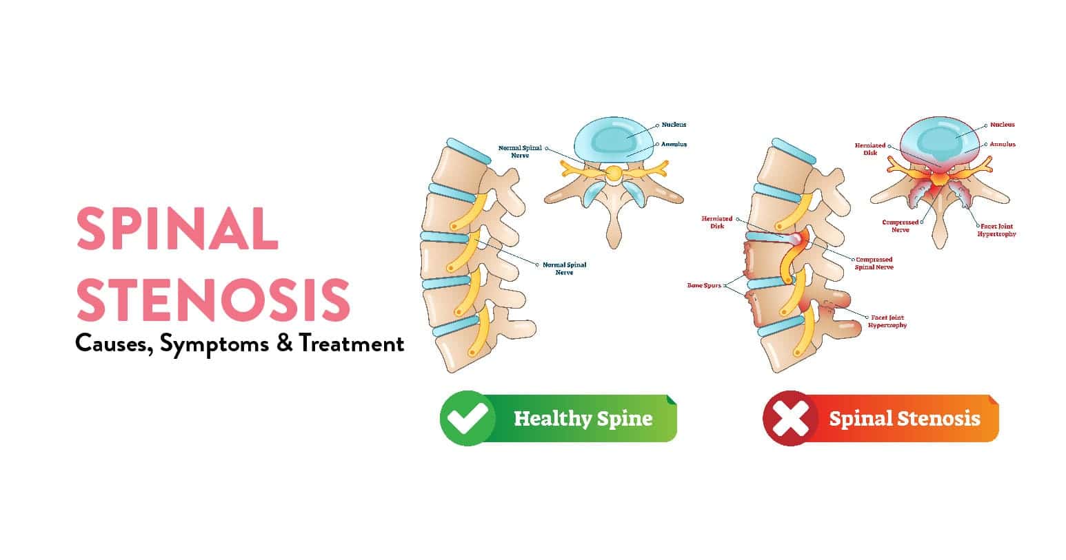 Surgical treatment of spinal stenosis is usually recommended for patients who have pain and other symptoms that affect their daily activities. Surgery may also be used to relieve compression on nerves in cases where there is no improvement with nonsurgical treatments.