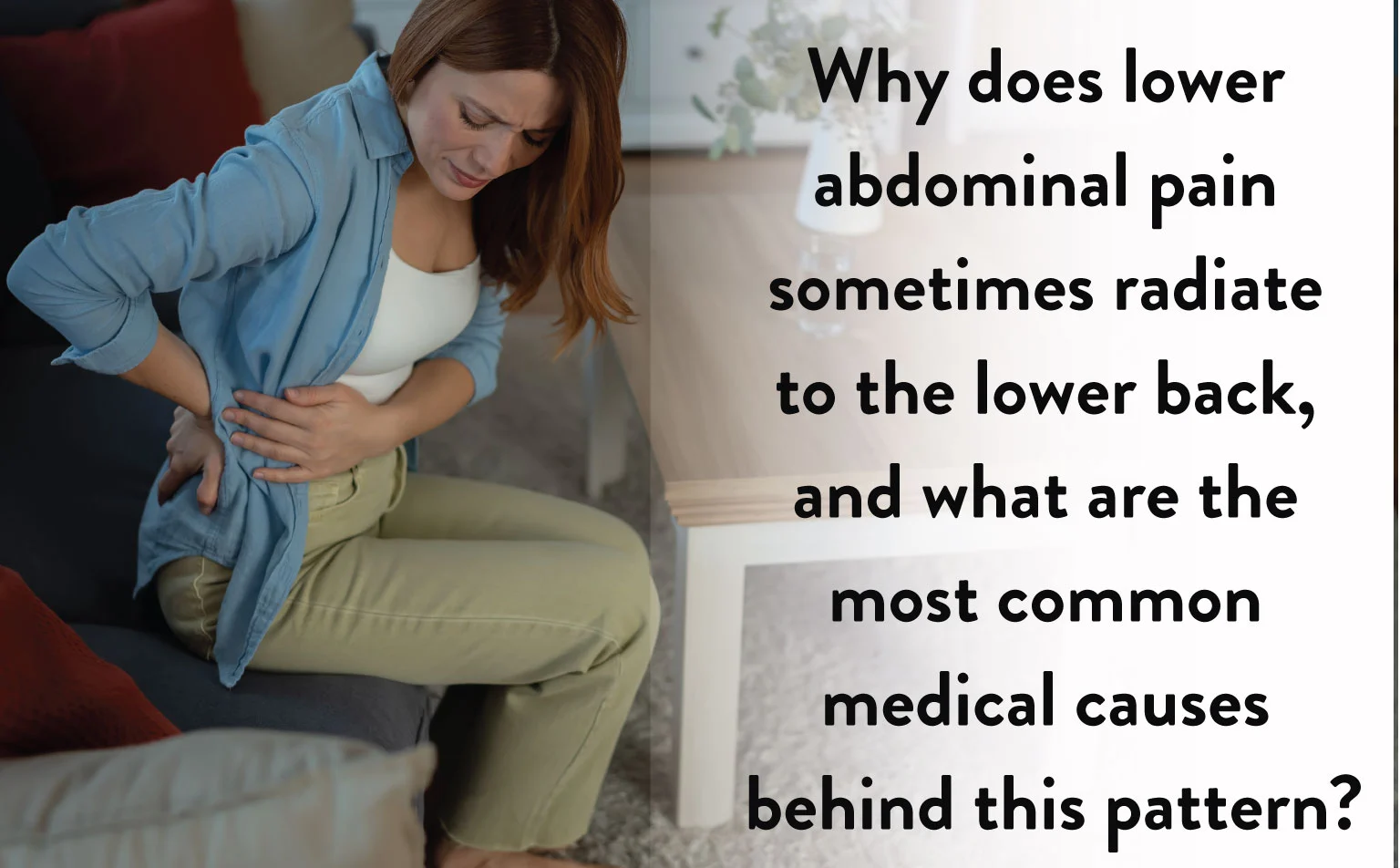 Lower abdominal pain can radiate to the lower back due to shared nerve pathways and interconnected organs in the pelvic region. Common causes include Kidney Stones, Urinary Tract Infection, menstrual cramps, and digestive issues like constipation or gas. In women, conditions such as Endometriosis or ovarian cysts may also cause this pain pattern.
